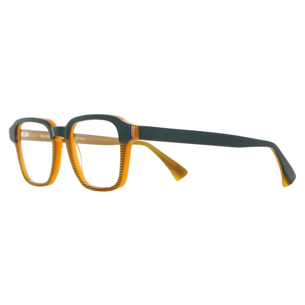 Ένας σκελετός οράσεως που σίγουρα δεν του λείπει το χρώμα και δεν περνά απαρατήρητος. Διαβαθμισμένο από σκουρότερη χακί πάστα στο πάνω μέρος σε ζεστή κεχριμπαρένια απόχρωση στο τελείωμα του αυτή η χρωματική παλέτα "δένει" αρμονικά όλη την μετόπη του σκελετού. Αν δεν σας αρέσει η μονοτονία του μονόχρωμου και λατρεύεται τα γεωμετρικά μοτίβα, τότε αυτό το Vanni μοντέλο θα κερδίσει σίγουρα το ενδιαφέρον σας.