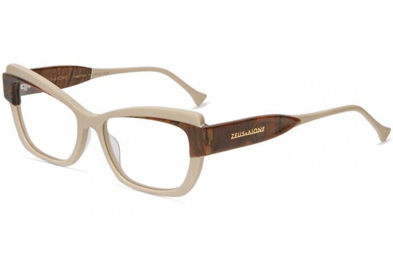 Ένας πολύ κομψός σκελετός οράσεως από την Zeus + Dione που αποπνέει διαχρονική φινέτσα και σύγχρονη αισθητική. Ο ιδιαίτερος συνδυασμός χρωμάτων του μπεζ με καφέ μοτίβο που θυμίζει υφή ξύλου στους βραχίονες και στην μετόπη προσθέτει έναν μοναδικό χαρακτήρα, ενώ το σχήμα του χαρίζει ισορροπία και στιλ σε κάθε εμφάνιση.
